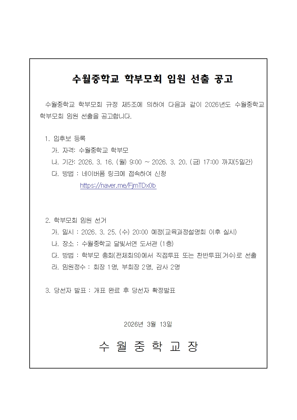2026. 학부모회 임원 선출 공고