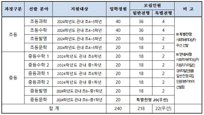 2025학년도 거제교육지원청영재교육원 영재교육대상자