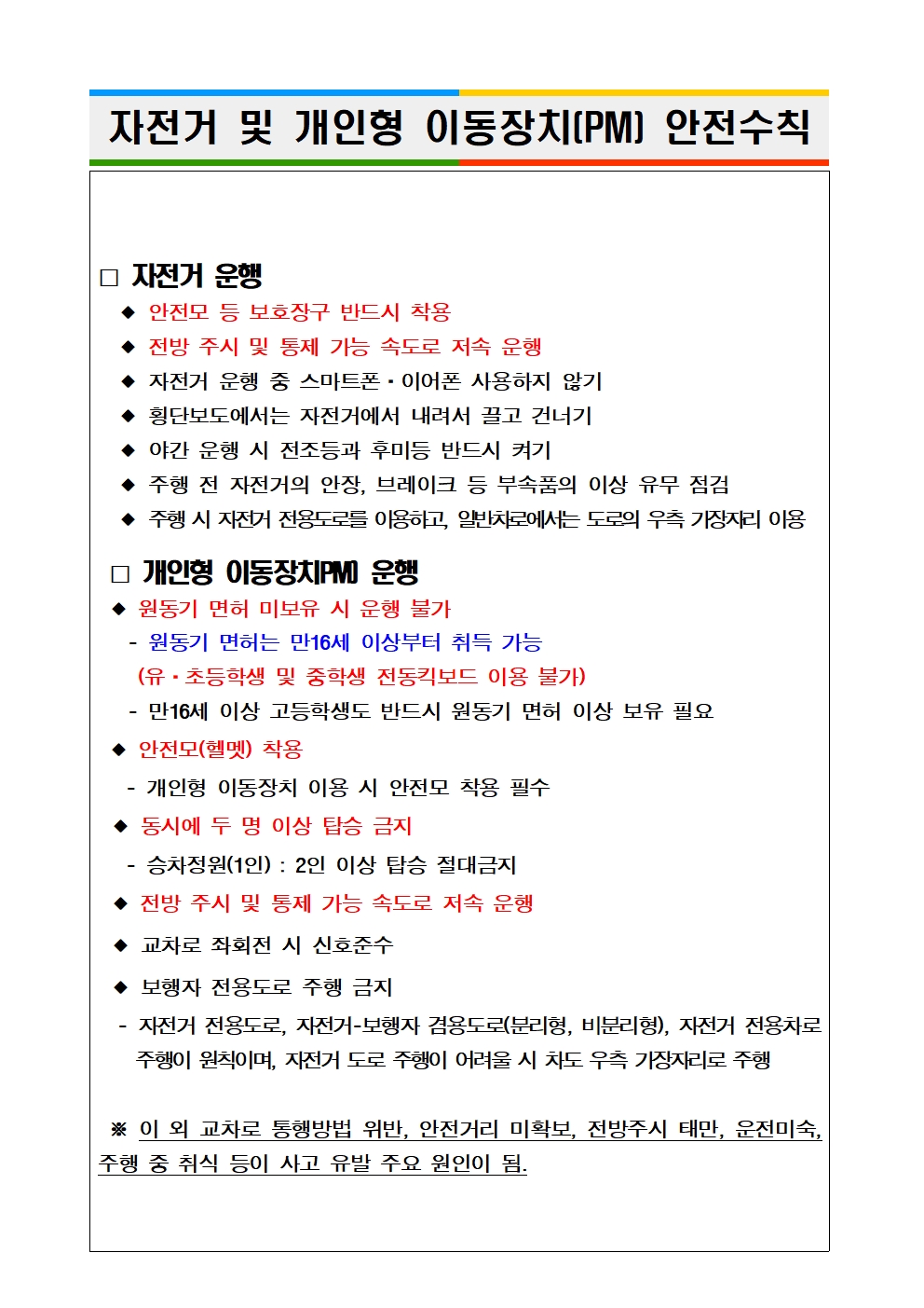 자전거 및 개인형 이동장치(PM) 안전수칙