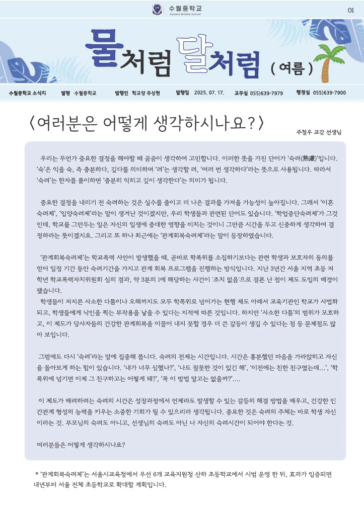 2025. 학교 소식지 '물처럼 달처럼' (여름)