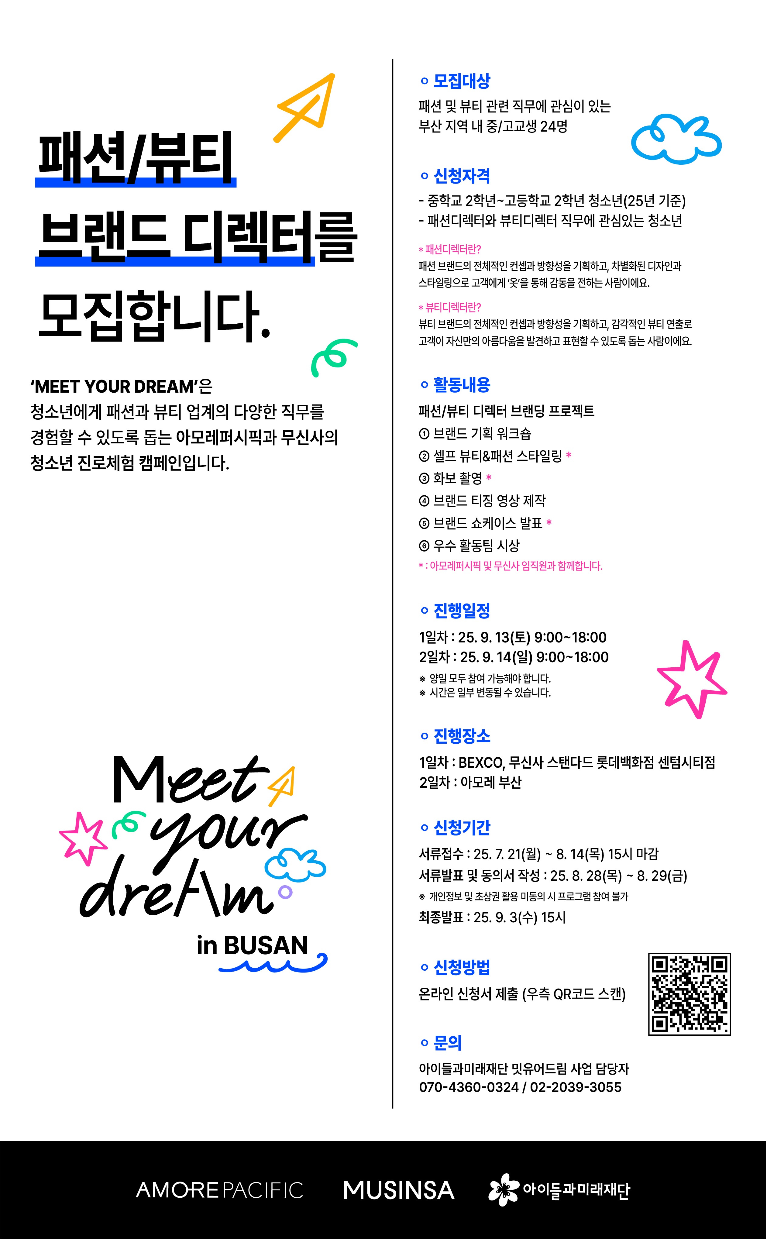 아모레퍼시픽X무신사 MEET YOUR DREAM in 부산 참여 청소년 모집 안내
