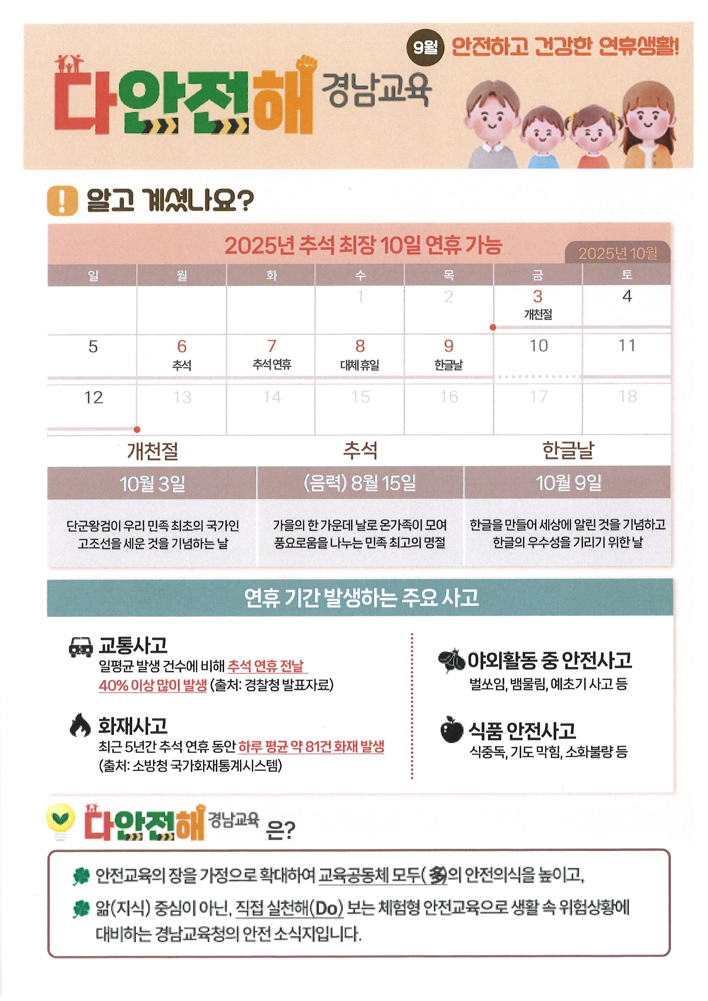 안전교육 홍보 소식지 '다안전해 경남교육' 9월호 안내