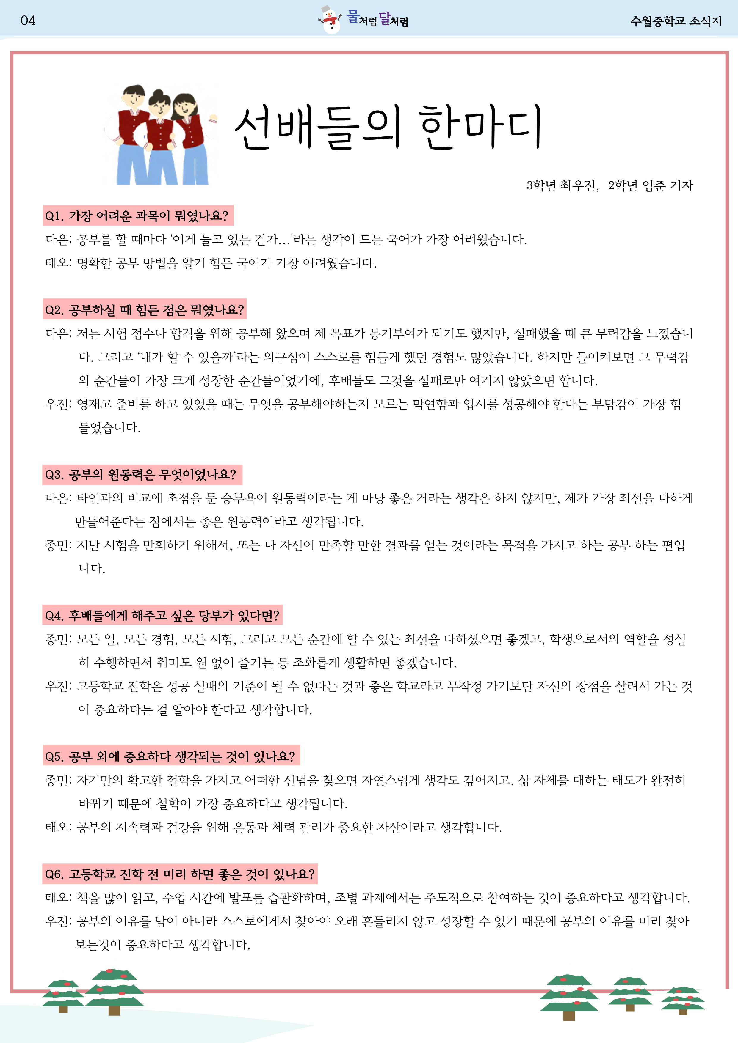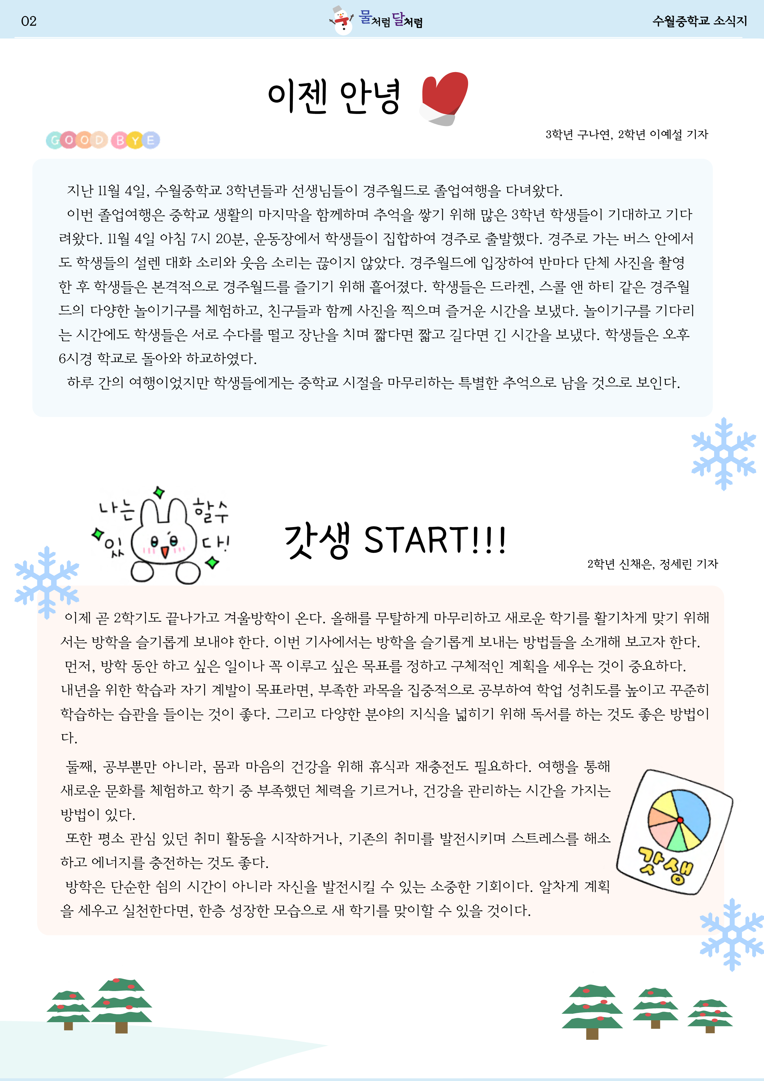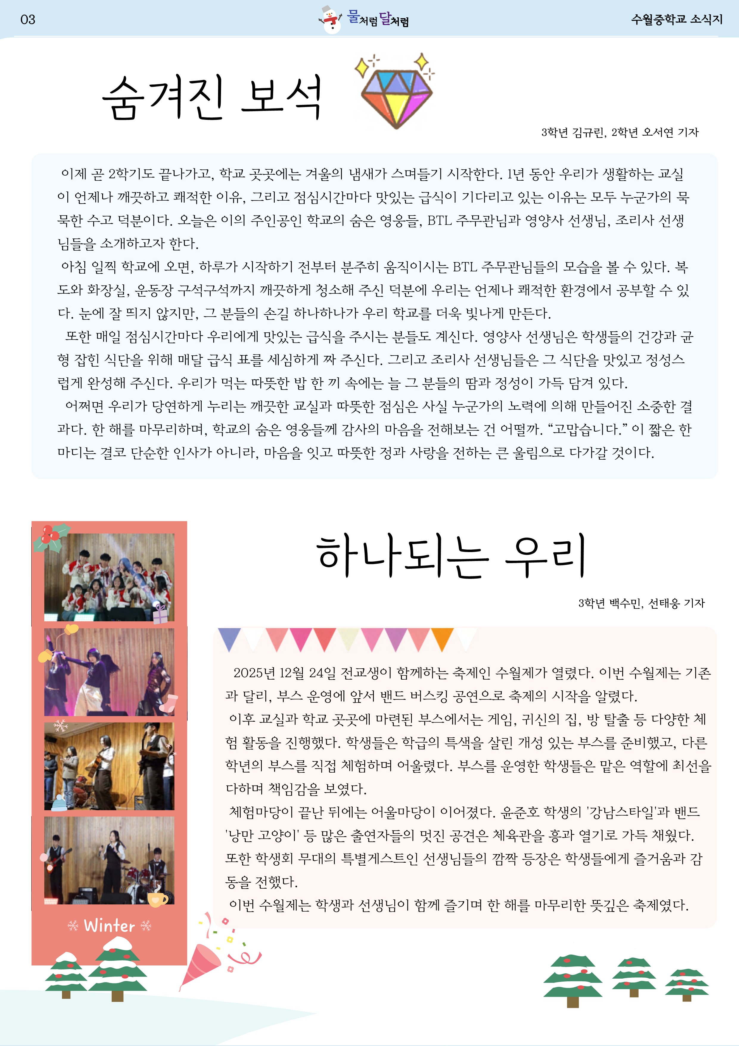 2025. 학교 소식지 '물처럼 달처럼' (겨울)